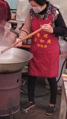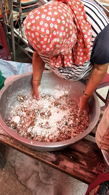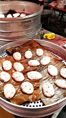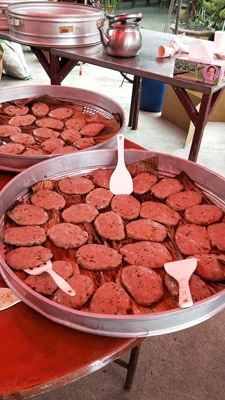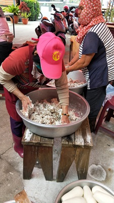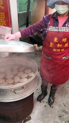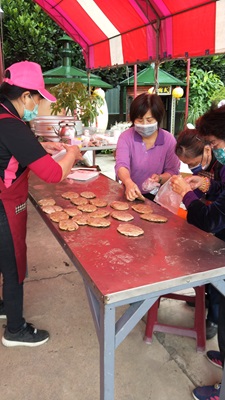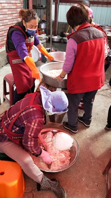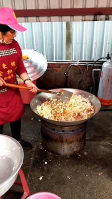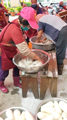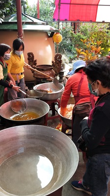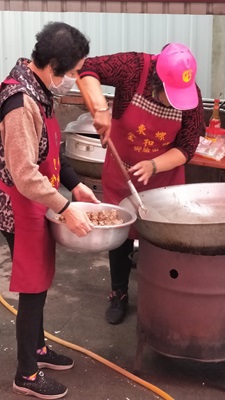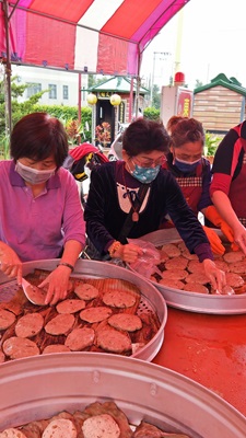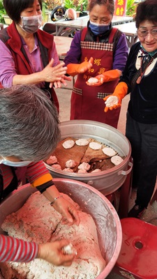 東螺金和興御膳團正準備餐點,做粿等侯下午祭拜東螺眾先賢賞兵犒將。
